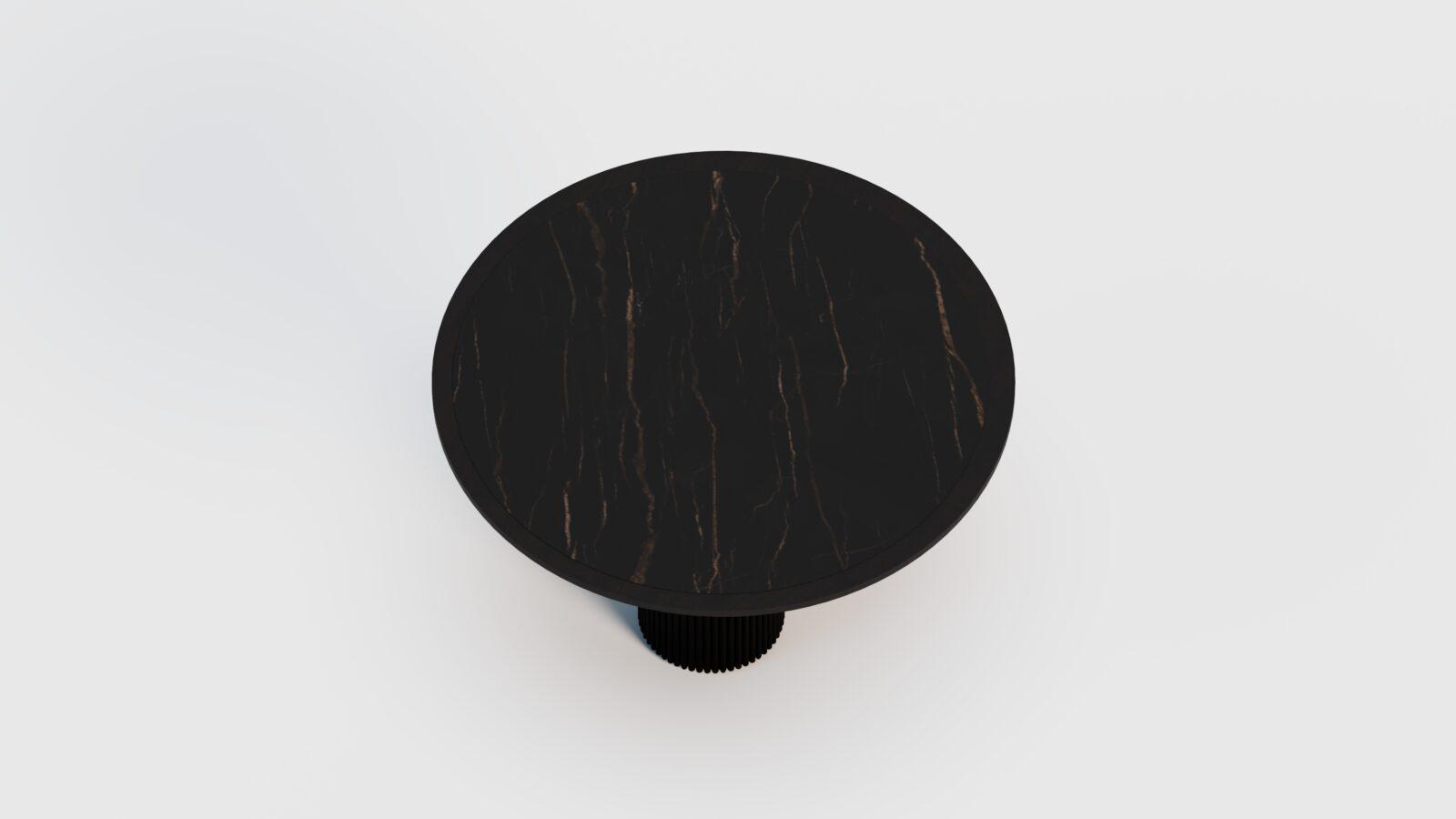 Stół Bangkok to nowoczesna, okrągła forma zaprojektowana jako centralny punkt jadalni. Połączenie głębokiej czerni blatu ze spieku kwarcowego z elegancką, ryflowaną metalową podstawą tworzy wyrazistą, ale spokojną kompozycję. Okrągły blat sprzyja rozmowie i buduje kameralną atmosferę przy wspólnych posiłkach. Subtelne złote użylenie inspirowane naturalnym marmurem wnosi do wnętrza nutę luksusu, zachowując nowoczesną prostotę. Stół doskonale odnajduje się w aranżacjach modern, loft oraz modern classic. Blat ze spieku kwarcowego łączy estetykę z trwałością. Jest odporny na codzienne użytkowanie, łatwy w pielęgnacji i zachowuje swój nienaganny wygląd przez lata. Centralnie osadzona, metalowa podstawa zapewnia stabilność i umożliwia wygodne ustawienie krzeseł wokół stołu.